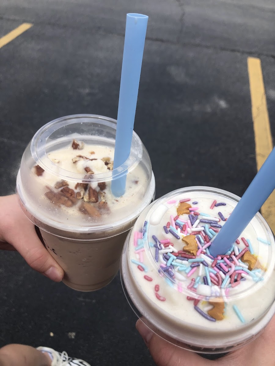 Now let's talk about the stars of the show—the menu. Dive into a world of tantalizingly unique flavors with their shakes. Indulge in the Cookies'n' Cream for a nostalgic treat, or savor the Salted Caramel shake for a perfect sweet-salty balance. If you’re looking to please your inner child, the colorful Fruity Pebbles shake will take you back to carefree mornings. And for something truly decadent, the Strawberry Cheesecake will have your taste buds dancing.